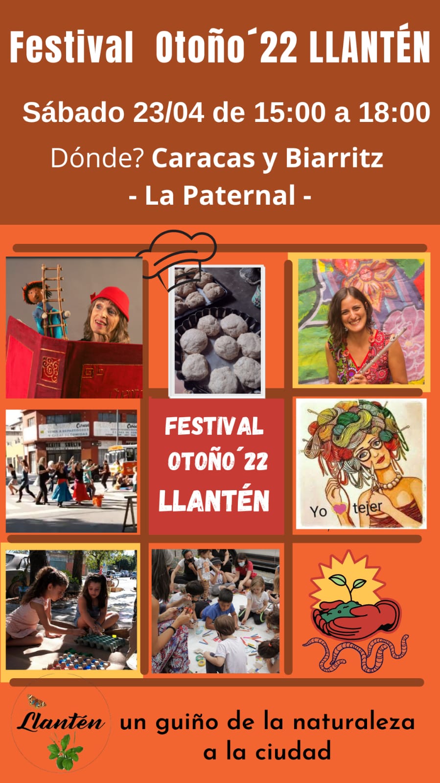 ?15:00 Amasando comunidad: a cargo de Patri, junt@s amasaremos el pan que compartiremos en el cierre. Podés colaborar con: harina integral o salvado o miel o levadura.