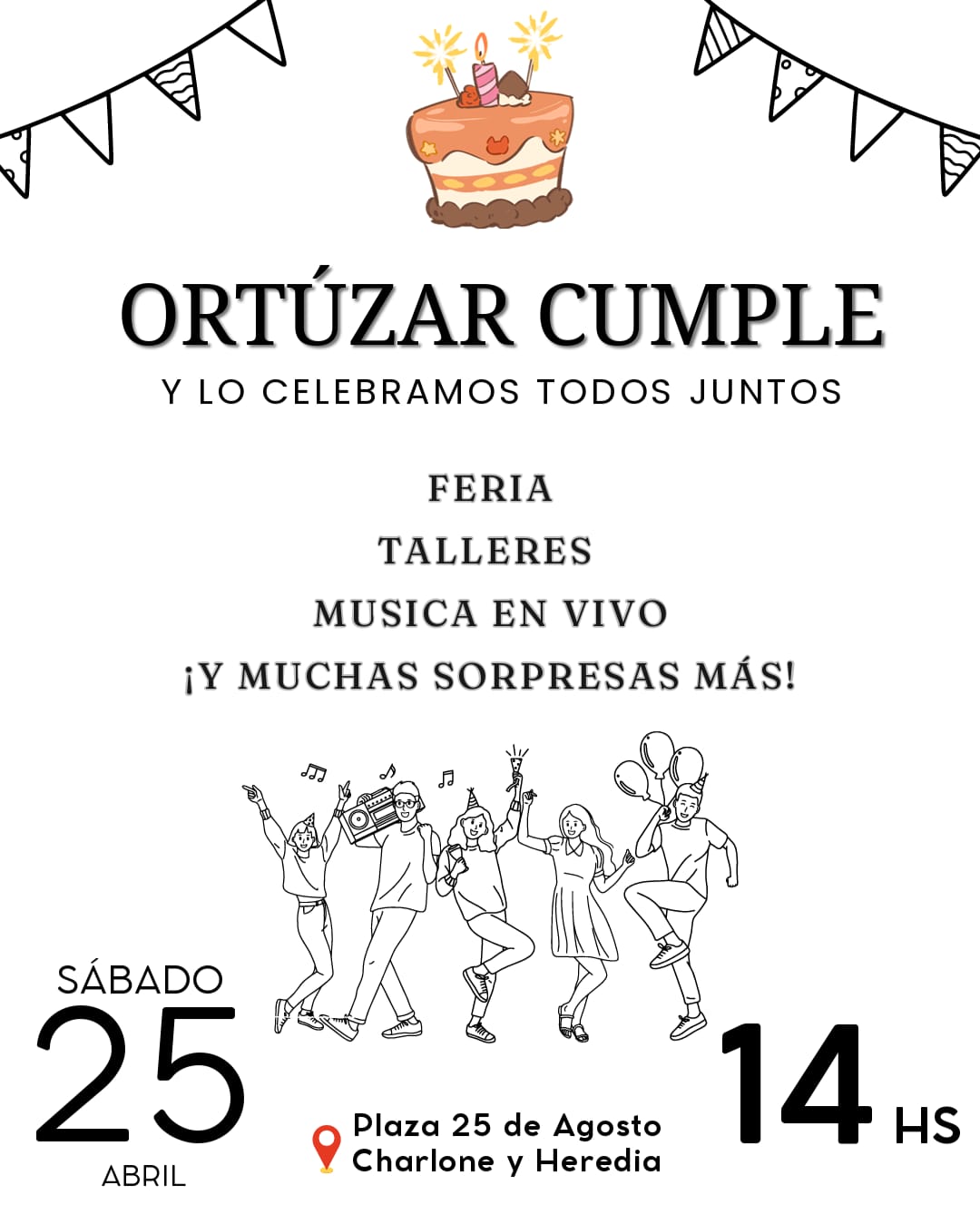 El sábado, desde las 14hs. el barrio de *Villa Ortúzar* celebrará su 164 aniversario. Para festejarlo organizaciones sociales, vecinas y vecinos organizan el festejo en la *Plaza 25 de Agosto*, Charlone y Heredia.