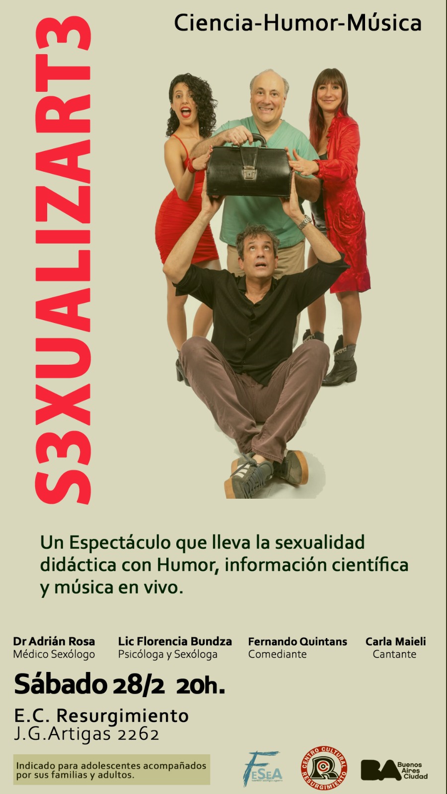 Estamos muy felices porque SexualizArte, el Late-Night-Show que lleva la Educación Sexual Integral a la gente con profesionales en el escenario llega a Resurgimiento, con entrada libre y gratuita, a la gorra, el sábado 28/2 20 hs. Ojalá puedan venir, las y los esperamos. Cualquier duda a nuestro Instagram: @sexualizarte.teatro