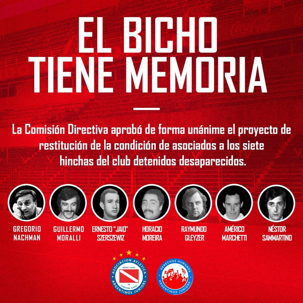 A menos de una semana de un nuevo 24 de marzo, la Comisión Directiva de Argentinos Juniors decidió restituir la condición de asociados a siete detenidos desaparecidos de la institución. El acto es producto de la lucha persistente de un grupo de asociados que año tras año mantuvieron viva la memoria de los desaparecidos. Las familias recibirán los correspondientes carnets […]