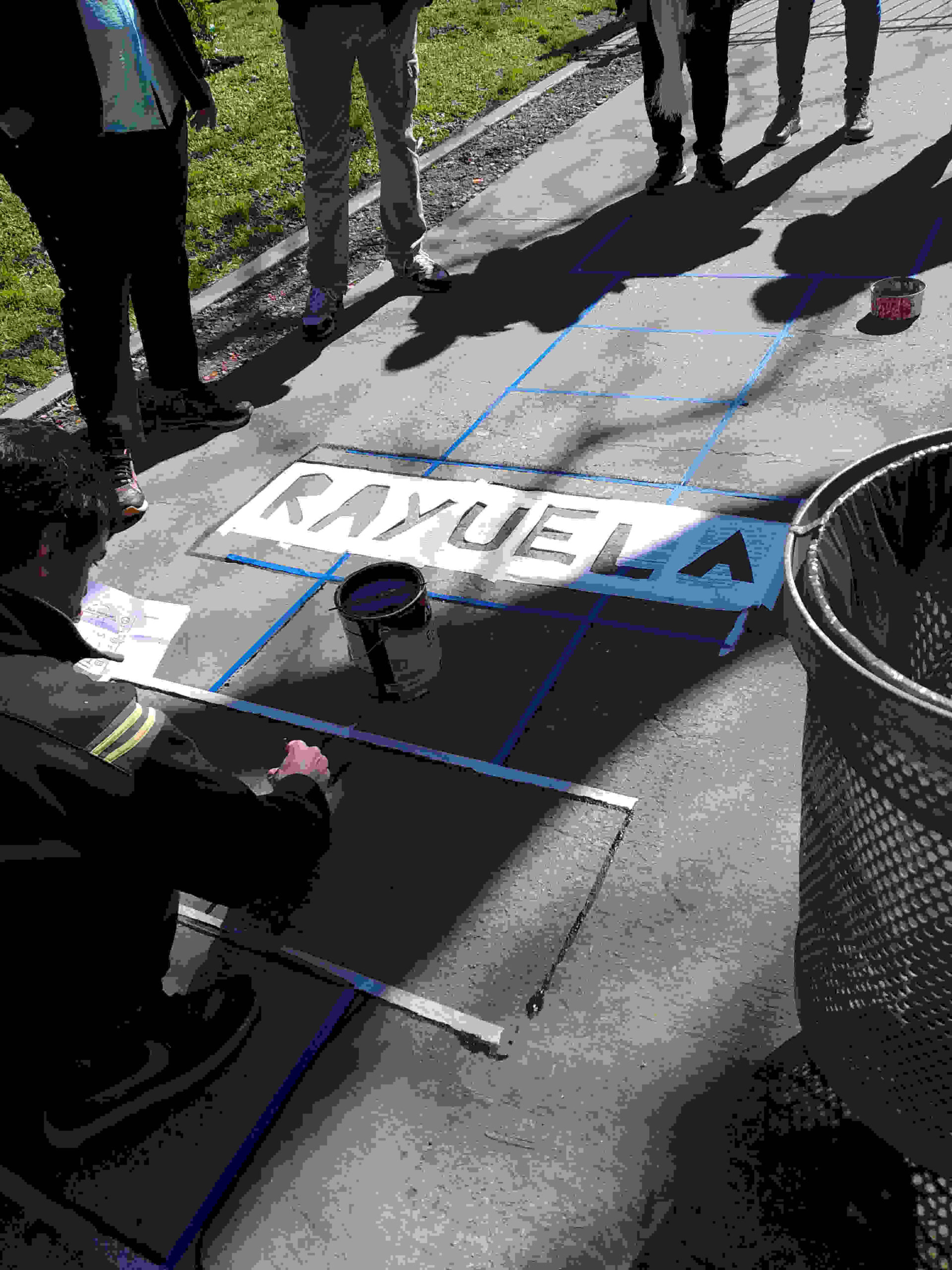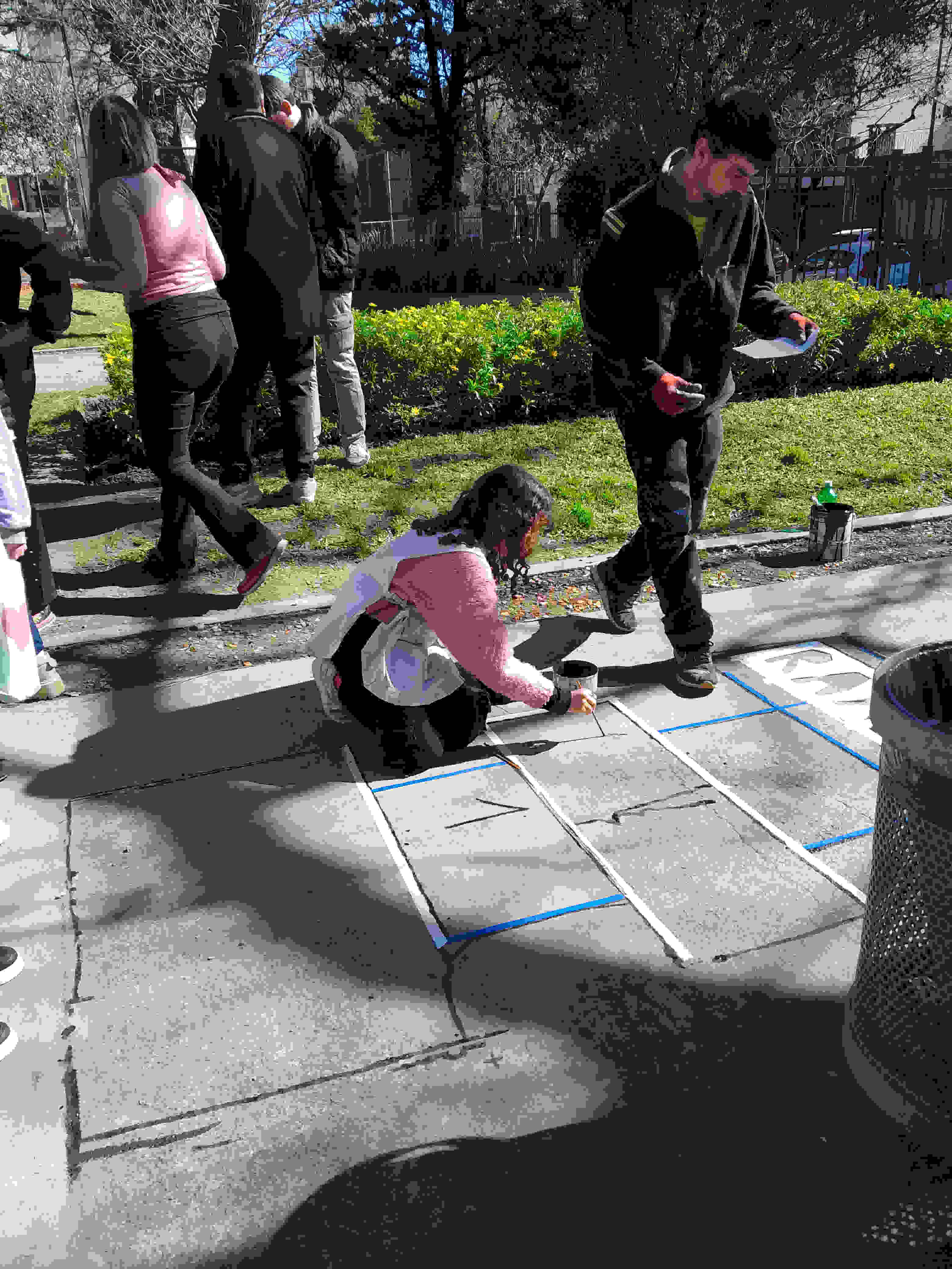 En el camino central de entrada por la calle Baigorria, un muralista le dio forma a la rayuela y luego chicos y chicas de sexto grado de una escuela de la zona fueron los encargados de aportarle color. La tarde se prestó con un sol acorde a las necesidades de una actividad a la intemperie. La idea había nacido de la última acción en febrero, cuando se recordaron los 40 años de la muerte del escritor.