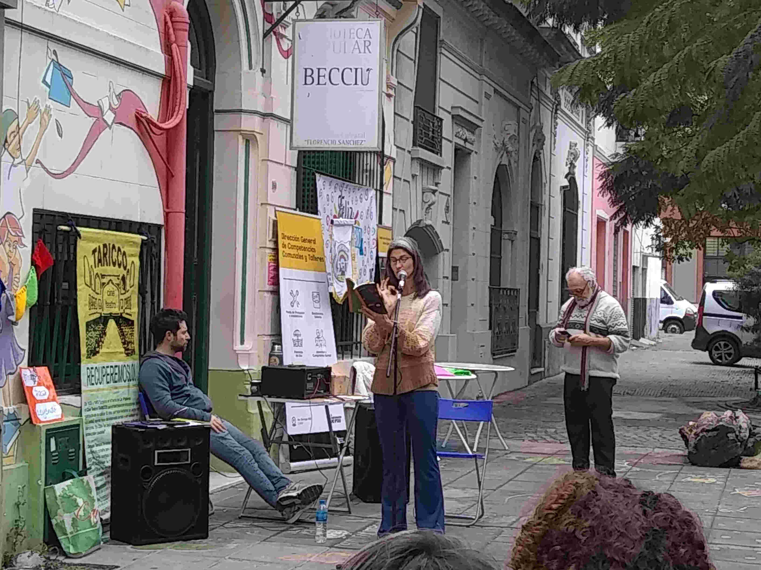 Norberto Zanzi, presidente de la biblioteca, explicó a este medio que la organización fue compartida con la Comuna 15, aunque a último momento todo lo que estaba previsto para la concientización sobre reciclado se bajó de la jornada. El pasaje fue cerrado con tiempo como para montar en la puerta de la biblioteca una suerte de escenario y colocar unas hileras de sillas. El micrófono lo inauguró Anto. Antonio es profe de música e interpretó un repertorio basado en un cancionero rioplatense. Lo siguió Betania Meglio, profesora de danza y sus alumnas en una interpretación que motivó cálidos aplausos.