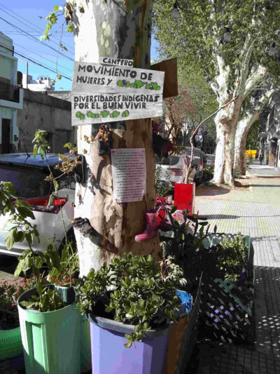 Coherentemente, su acceso sigue siendo el cantero en el que se expresa el verde de las plantas con una marcada presencia en sus carteles de diversidades y conceptos propios de pueblos originarios y organizaciones en lucha por el buen vivir. Este cantero, esta tarjeta de presentación, es identificado por los organizadores de la biblioteca como un anclaje barrial. Fuera y dentro, un mundo de libros y actividades colectivas esperan. Conversamos con Federico Baggini, uno de los fundadores de la ByLPLI.