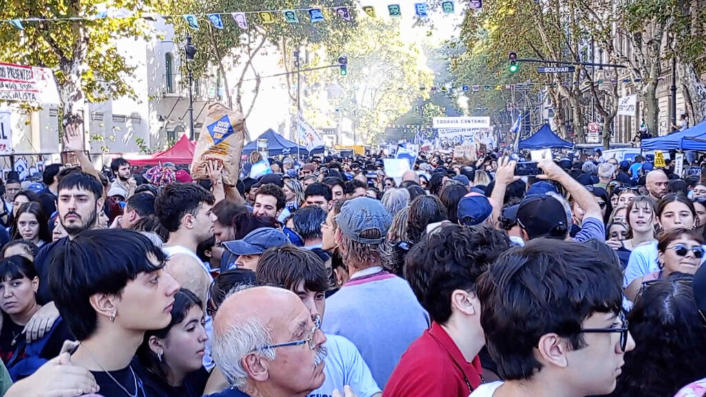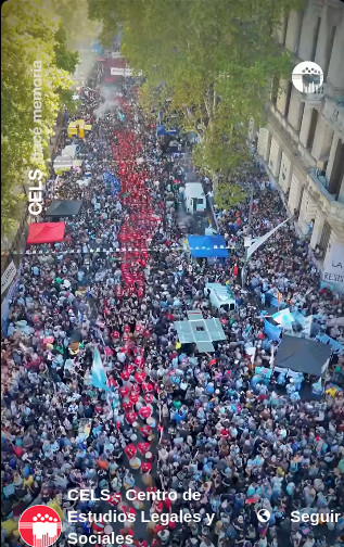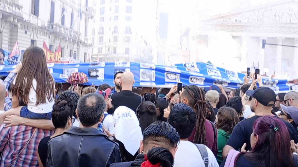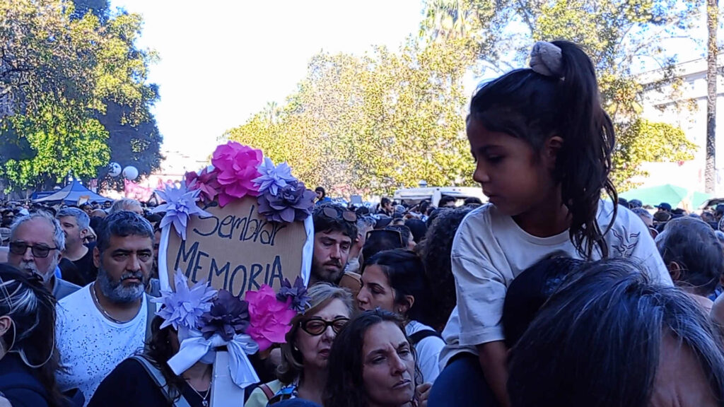 De manera que muchas familias optaron por marchar, por acercarse a la plaza juntos, chicos con sus padres, madres, abuelos, bien temprano en una suerte de procesión laica, subir las escaleras del subte entre las 12 y las 13:30, llegar hasta el escenario ya armado y luego volver a casa antes que se complique la vuelta. Manifestaron una necesidad de responder recurrentes campañas de negacionismo alrededor de la violencia institucional instaurada por los militares durante la dictadura, con la particularidad de hacerlo simplemente con la convicción de saber lo ocurrido, sin responder a la violencia discursiva instalada muchas veces desde el gobierno y por los medios y las granjas de bots que reproducen y amplifican sus discursos.