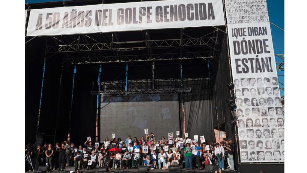 Decenas de miles de personas asistieron al acto en Plaza de Mayo a 50 años del golpe militar genocida. Hubo mucha rotación, sobre todo familias que fueron a primera hora y se retiraron temprano para no quedar atrapadas en la multitud que se esperaba. Después de las 15:00 las inmediaciones de la plaza no se podían transitar. Destacaron la presencia de organizaciones sociales por encima de las partidarias, así como grupos de familias, amigos, vecinos que marcharon sin encolumnarse en perfiles partidarios. También destacó el recambio generacional, junto a los nacidos en dictadura se movilizaron jóvenes y muy jóvenes