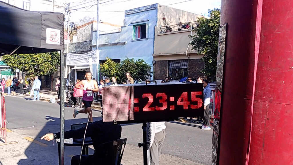 El escenario estuvo montado en la esquina de Juan A. García y Gavilán, al igual que en otras ediciones. Las puertas del estadio Diego Armando Maradona que dan sobre Juan A. García estuvieron abiertas desde muy temprano para que competidores y organizadores puedan tener acceso al baño y a la corriente eléctrica. Ese es el punto de largada y de llegada, allí está el enorme reloj digital que sólo importa para un puñado de competidores, porque para la mayoría, lo importante es llegar, sea a los 3,5k o las dos vueltas completas.