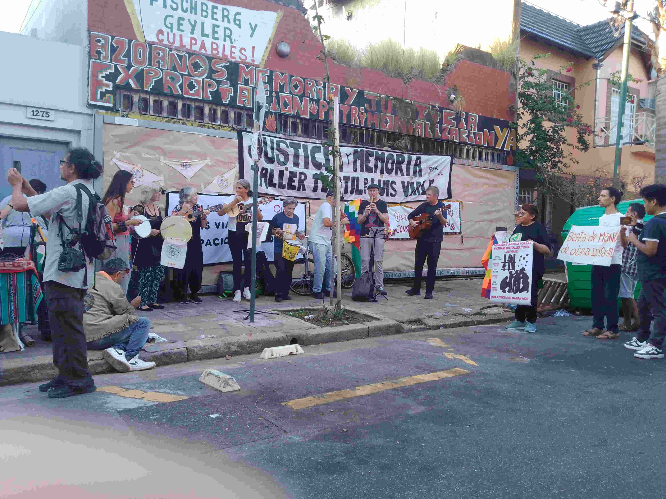 Por esta razón, a 20 años de la masacre, entre las actividades que se llevaron a cabo hubo una caminata desde la puerta del taller, dando la vuelta manzana exigiendo justicia. Llevaban carteles con los nombres de las víctimas y los pañuelos bordados y se detuvieron frente a Galicia 1241, para gritar que ahí mismo a una cuadra y media, los herederos de Fischberg y Geiler siguen operando irregularmente.
