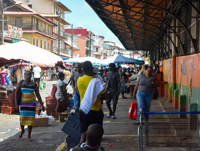 Entramos por la Rue de la Madeleine, una avenida que se llama igual que el bulevar parisino bautizado en honor a una iglesia que aquí nadie conoce. La capital se recuesta sobre la costa norte, y, paralelas a ella, corren dos grandes avenidas de este a oeste: la Charles De Gaulle – el presidente francés más importante del siglo veinte – que que luego se convierte en avenida Jean d’Estrées – el colono más audaz del siglo dieciocho – y la avenida de la Libertad, que se convierte en el boulevard de la República. Hay algunas callecitas que recuerdan a próceres locales, como Félix Ebue, primer oficial colonial de origen afro, o Justin Catayée, fundador del Partido Socialista Guayanés.
