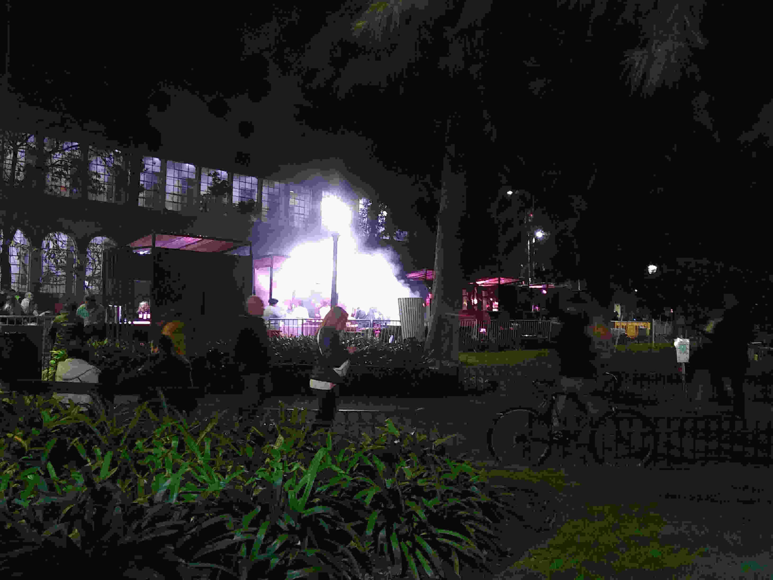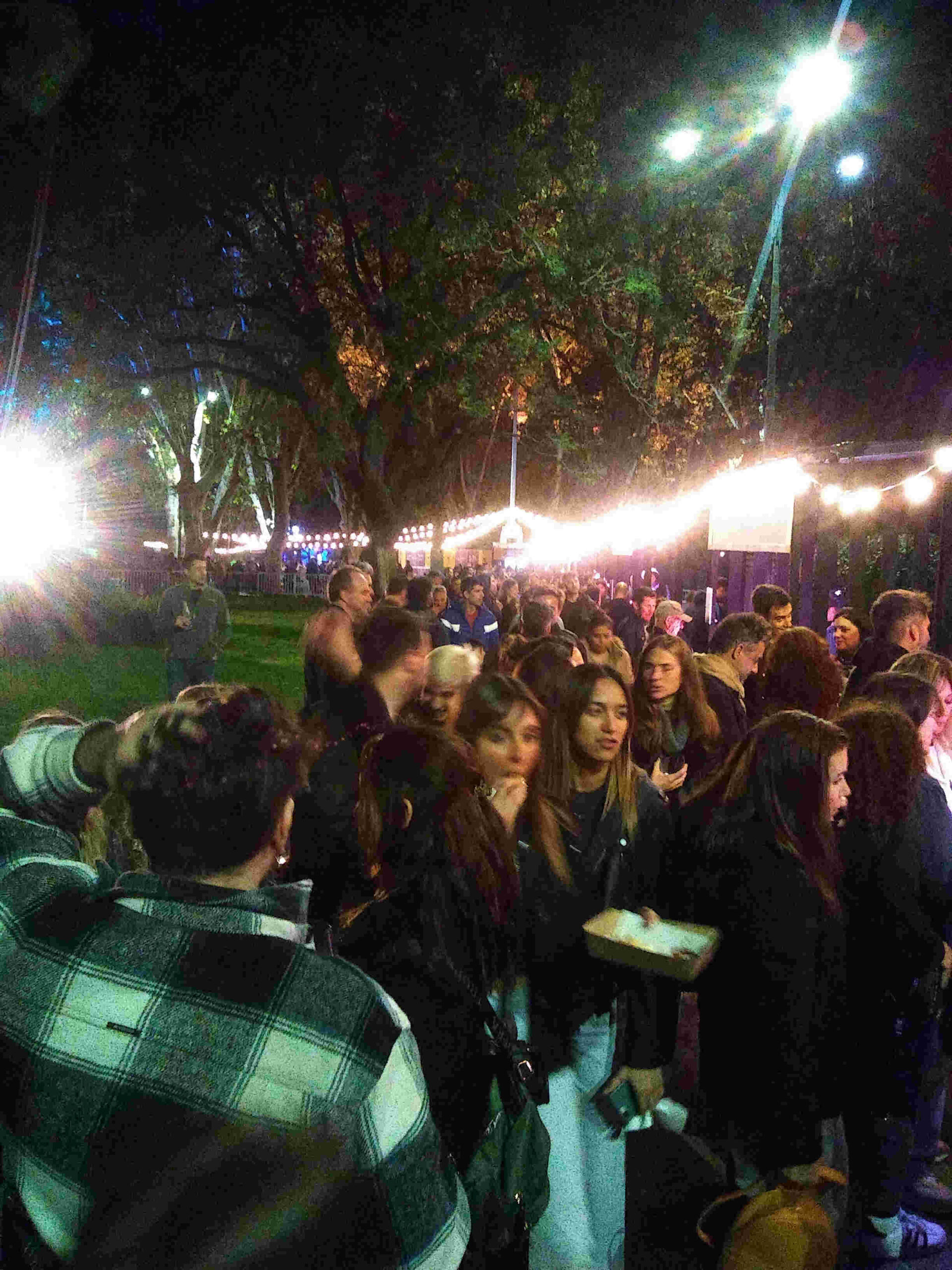 Llegando a la plaza por la diagonal Fernández de Enciso y Nueva York nos recibió una columna de humo con el característico olor a chori, irresistible para muchos y muchas. El puesto, paradoja incluida, se llamaba “Basta de Humo” y el choripán tradicional costaba $1.500. A esa hora no era el puesto más requerido. Los asistentes al evento elegían bandejas con varias piezas de comida árabe o empanadas y hacían cola frente a algunos de los stands gastronómicos ubicados sobre la calle Mercedes.