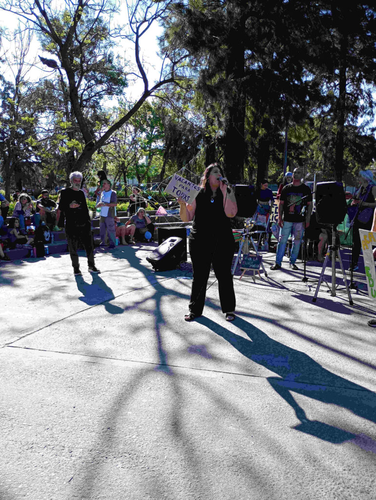 Entre las invitadas al festival del viernes estuvo Patricia Pines, fundadora del grupo “Vacantes para Todxs en las Escuelas Públicas”, un grupo de alrededor de 30.000 personas, en el que la mayoría tuvo que realizar amparos judiciales en estos años para lograr un lugar en una escuela pública. En su intervención, entre otras cosas anunció que un conjunto de alrededor de 50 familias decidieron presentarse como adherentes a ese amparo, con la representación de uno de los abogados de Vacantes para todos.