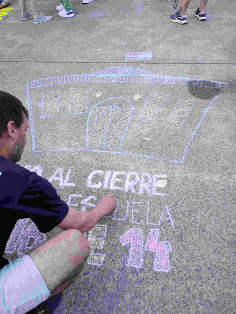 El color, la música y la alegría necesaria para sostener a los y las docentes, que junto a las familias de la Fray Justo resisten su cierre, estuvo a cargo de varios grupos que aportaron su arte a la actividad. Fue particularmente impactante la intervención del grupo Folclore en Movimiento, tanto por lo numeroso, como por la energía puesta en la representación. Hubo además cantantes y una sostenida y variada participación en el micrófono, como la del grupo de teatro Mandorlas, que ensayan en el teatro bar El Tejón, de Alvarez Jonte al 1900, frente a la escuela 16.