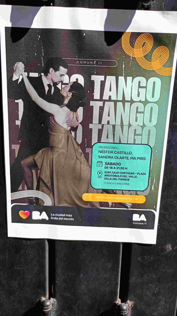 Respecto a las actividades que brinda la Comuna 11 en el SUM Julio Cortázar, Adriana explicó que “Lo que llevamos y que es muy lindo es taller de Tango, los sábados de 18 horas a 21:30, con los profesores Néstor Castillo, Sandra Olarte y Pía Piris. Es muy amplio y empiezan conociendo lo que es bailar, que muchos no saben y otros van también a escuchar tango, que por ahí no pueden. Llevan su termo, su comidita y pasan el rato y es la parte social, que es lo que mas nos importa. No importa quien baila mejor, lo importante es que se lleven bien, que tengan un vínculo. Y lo mismo pasa con el taller de Folclore, que va los miércoles de 18 a 20:30 horas y el profesor es Juan Perrotta” . Estos talleres son a la gorra.