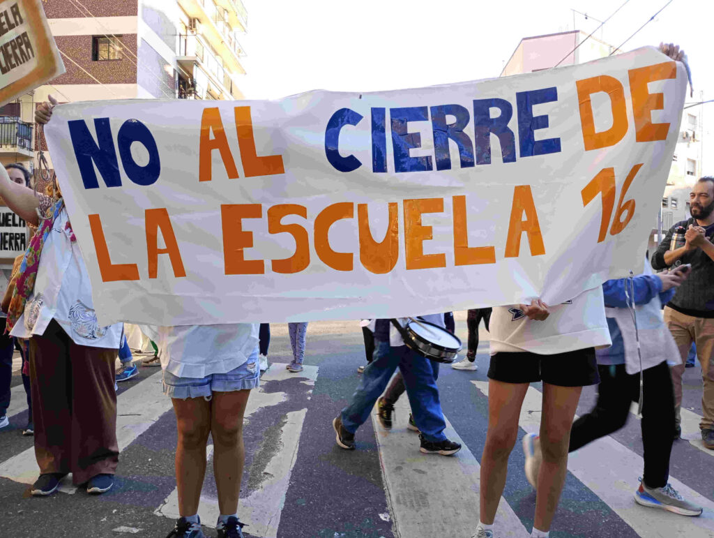 En una semana hubo tres actividades con importante participación de la comunidad educativa de la Escuela 16, dos semaforazos y un abrazo. En todas, el barrio acompañó a familias y docentes oponiéndose al cierre. Aún no está claro si esta situación en particular fue provocada a raíz de una decisión de los dirigentes de Argentinos Juniors o es una iniciativa originada exclusivamente en las políticas del Ministerio de Educación