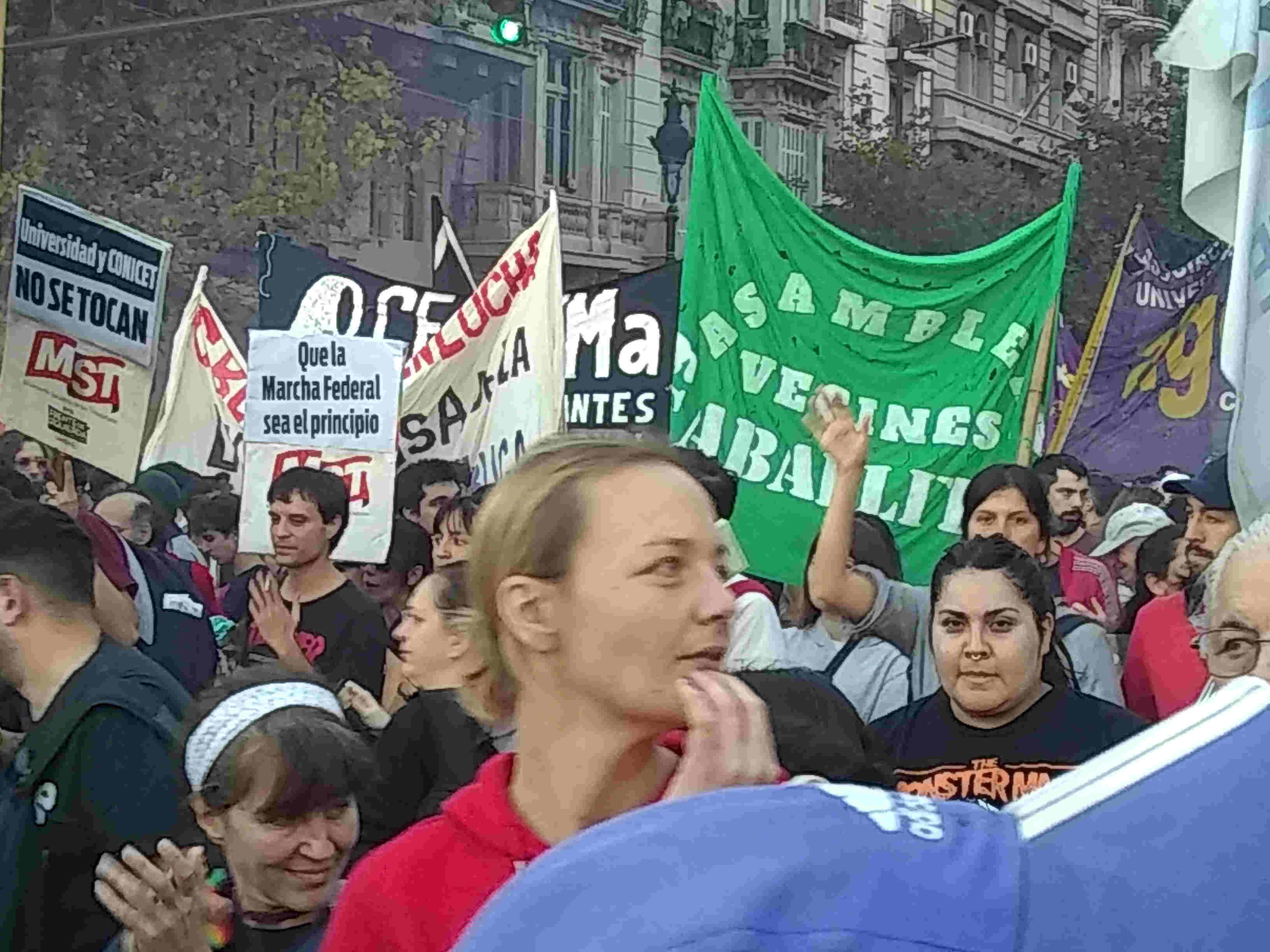 Desde temprano estudiantes en distintos puntos de la ciudad de Buenos Aires y del AMBA, también desde la ciudad de La Plata, comenzaron a concentrarse para marchar hasta el Congreso pasado el mediodía. La intención era hacer un alto, agruparse y luego marchar hasta Plaza de Mayo, uniendo una vez más dos de los puntos simbólicos de poder de la Nación. En muchos casos esto quedó en las intenciones, porque organizaciones sociales y, sobre todo, decenas de miles de personas reunidas en pequeños grupos o en familia, se dieron cita por fuera de las organizaciones.