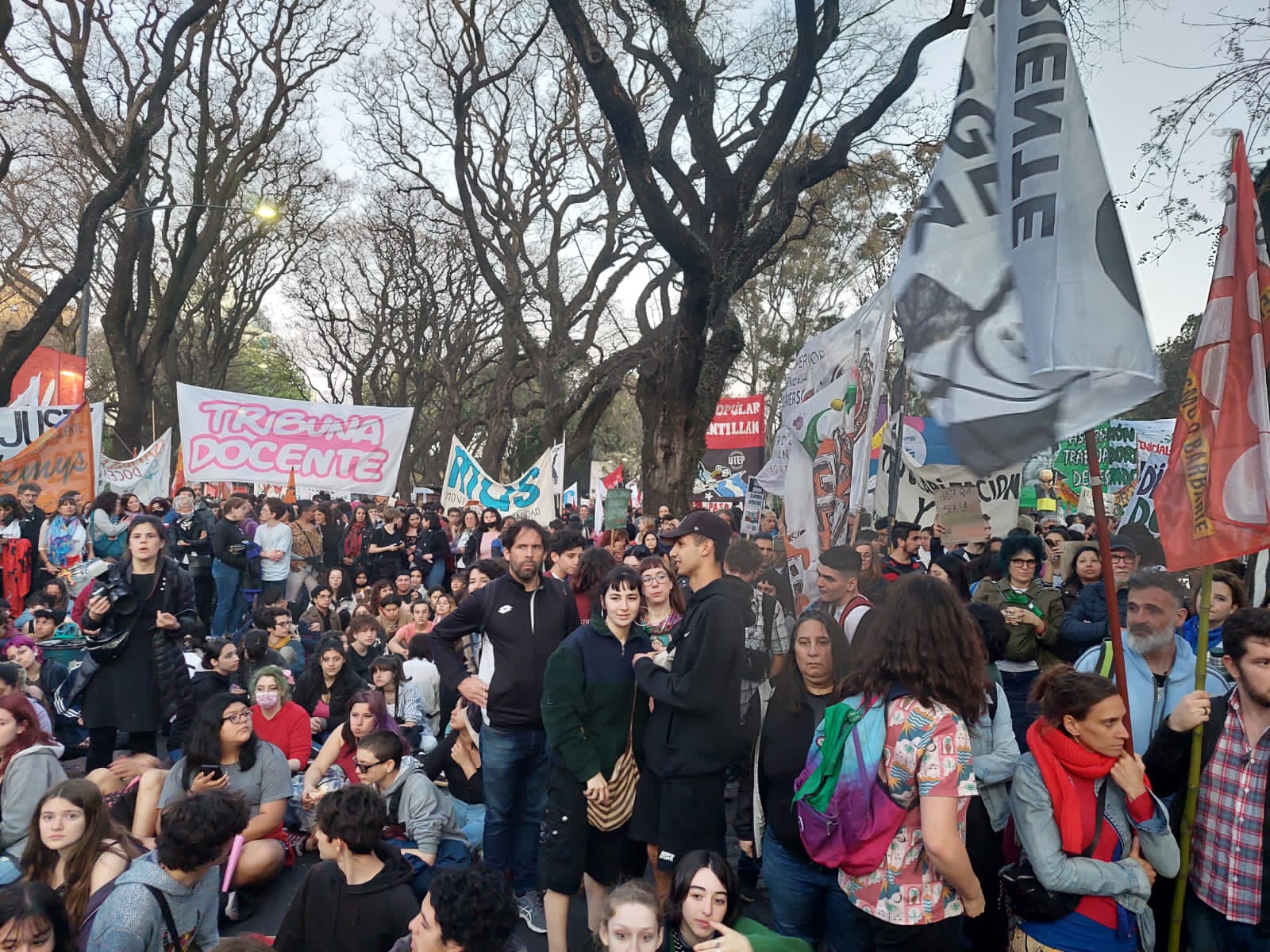 En el día de ayer, docentes agrupados en UTE y Ademys realizaron un paro de 24 horas con movilizaciones a la sede de la Jefatura de Gobierno de CABA. Hubo concentraciones previas en varios colegios de la Capital, la mayoría fueron después hasta el Mariano Acosta, desde donde partió la marcha a las 16 horas y otras confluyeron directamente en Jefatura de Gobierno.