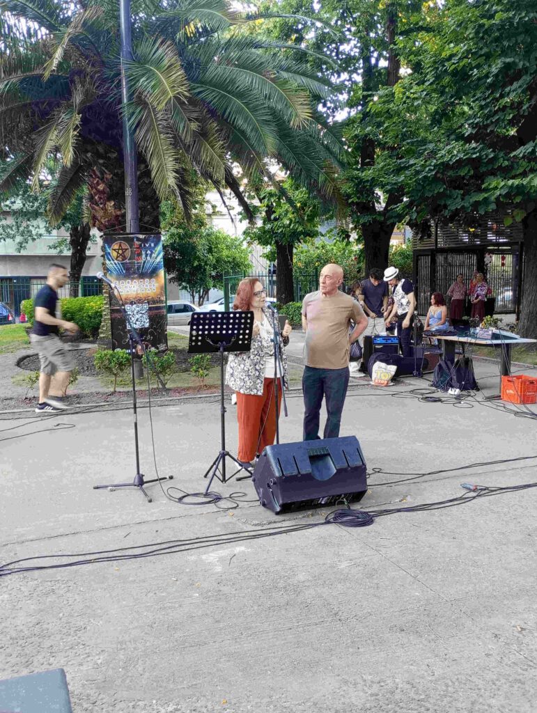Un grupo de jóvenes alumnos de la ET-24 fueron los encargados de recrear temas de rock nacional. Sonaron muy bien, se mostraron respetuosos con su propia interpretación musical y no arrancaron hasta que no lograron el equilibrio que buscaban en el sonido. Interpretaron temas que tuvieron el atractivo adicional de ser intergeneracionales, por lo que atraparon a vecinas y vecinos de todas las edades que estaban en la plaza.