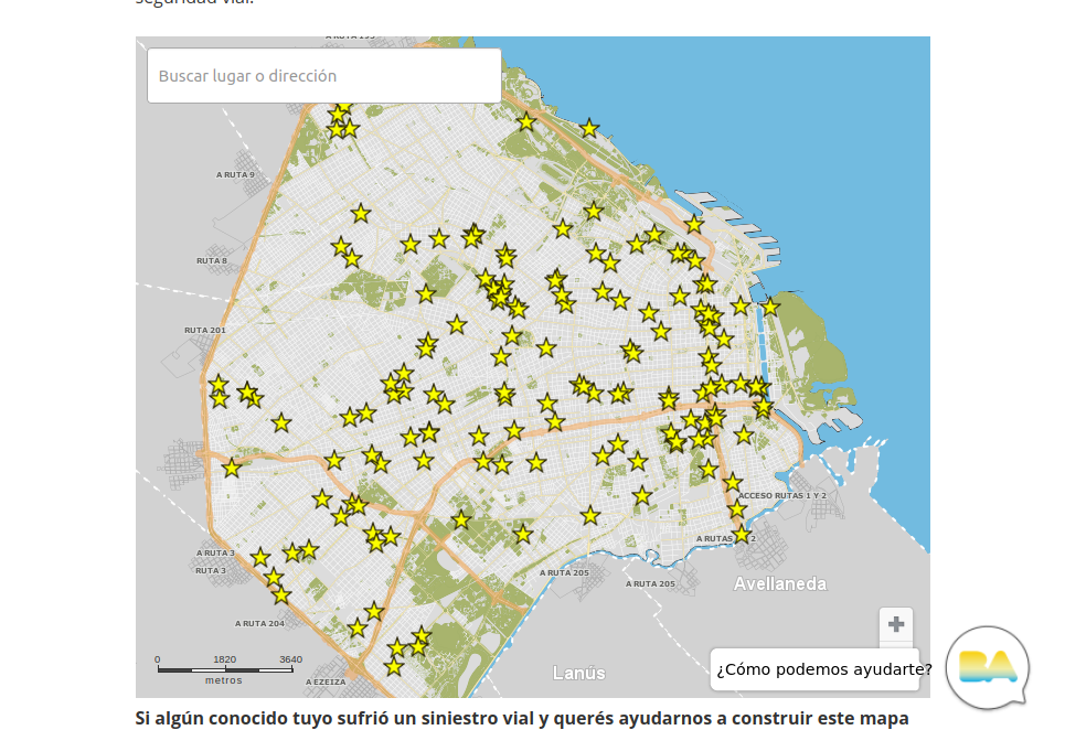 En la ciudad de Buenos Aires existe un mapa interactivo construido por los familiares de las víctimas fatales junto a ONG´s. Es una acción que comenzó el 21 de septiembre de 2005 con la colocación de la estrella de Paolo Mellano, a partir de la iniciativa de la asociación “Red Nacional de Familiares de Víctimas de Tránsito” en Olivos, Provincia de Buenos Aires. En la Ciudad de Buenos Aires la iniciativa de colocar las estrellas es también promovida por Madres del Dolor y ACTIVVAS.