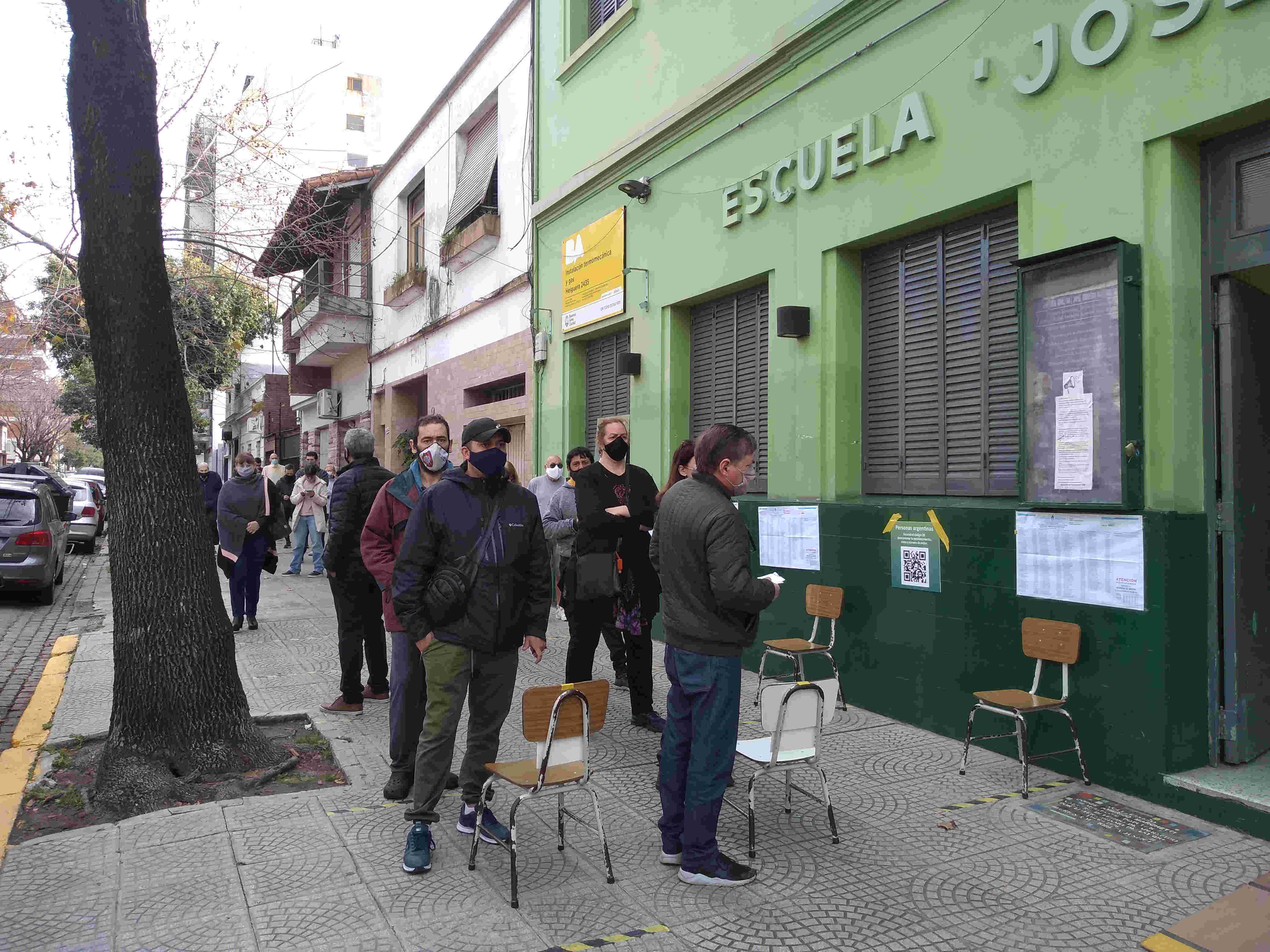 En algunas de las escuelas de los barrios de Santa Rita y Villa del Parque se sumaron contratiempos a los protocolos Covid-19, de manera que el arranque de las mesas se enlenteció y se formaron largas filas. Básicamente tuvo que ver con la demora en formarse la mesa por retraso de las autoridades.