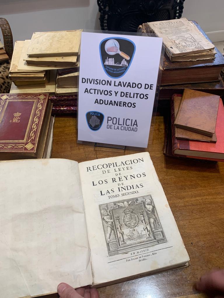 Con esta información se coordinó tomar contacto con el vendedor para ver la veracidad del ejemplar. Al corroborar que se trataba del patrimonio robado, el Juzgado ordenó un allanamiento en el domicilio del barrio de Recoleta. Allí se logró la recuperación del ejemplar buscado y además hallaron una gran cantidad de libros y manuscritos que datan del Siglo XVI. El juez actuante ordenó la clausura del lugar y secuestrar todos los materiales encontrados: 109 documentos históricos de Argentina, 72 libros y 42 manuscritos de Perú, México, Italia y Francia.