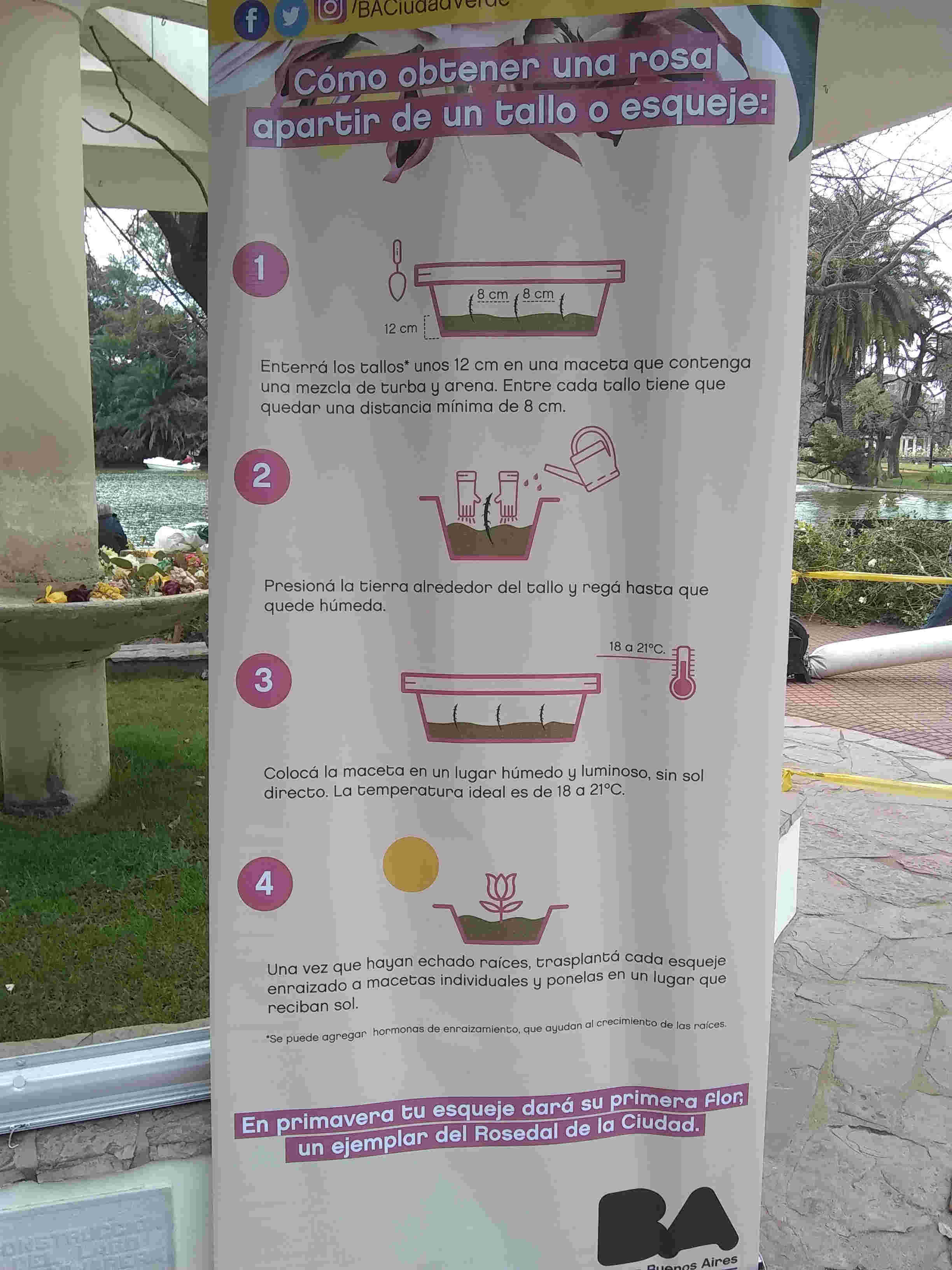 La poda y entrega de esquejes comenzó en Palermo este martes y continuará hasta el próximo viernes 15 de julio. La atención se brinda de martes a viernes entre las 13 y las 17 horas y se suspende por lluvias. La experiencia nuestra indica que se forman largas colas, que van rápido y que es preferible llegar mas cerca de las 13 que de las 17 porque hay menos gente.