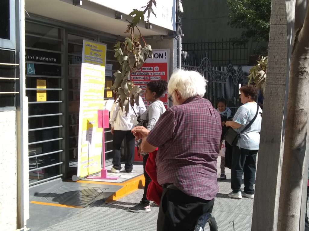 Entramos pidiendo permiso en una sala de espera atiborrada de personas esperando con diversas necesidades: demanda espontánea, vacunación, análisis de sangre, turnos para farmacia. Todos vecinos y vecinas de diversas edades y necesidades refugiados de un frío que no permite la opción de esperar en la vereda. Una demanda de atención en el servicio público de salud que aumenta en la medida que pierden o se precarizan sus trabajos.