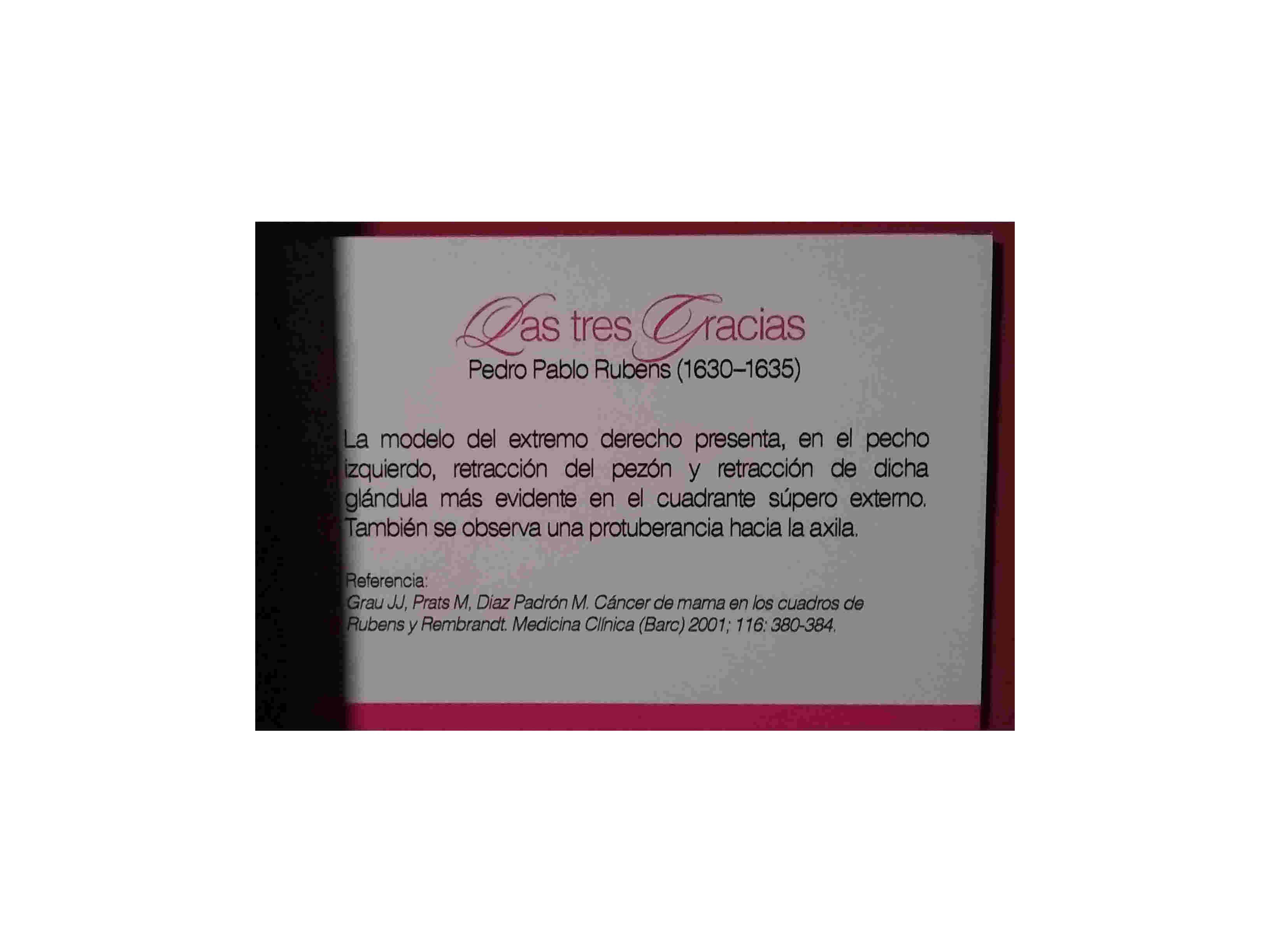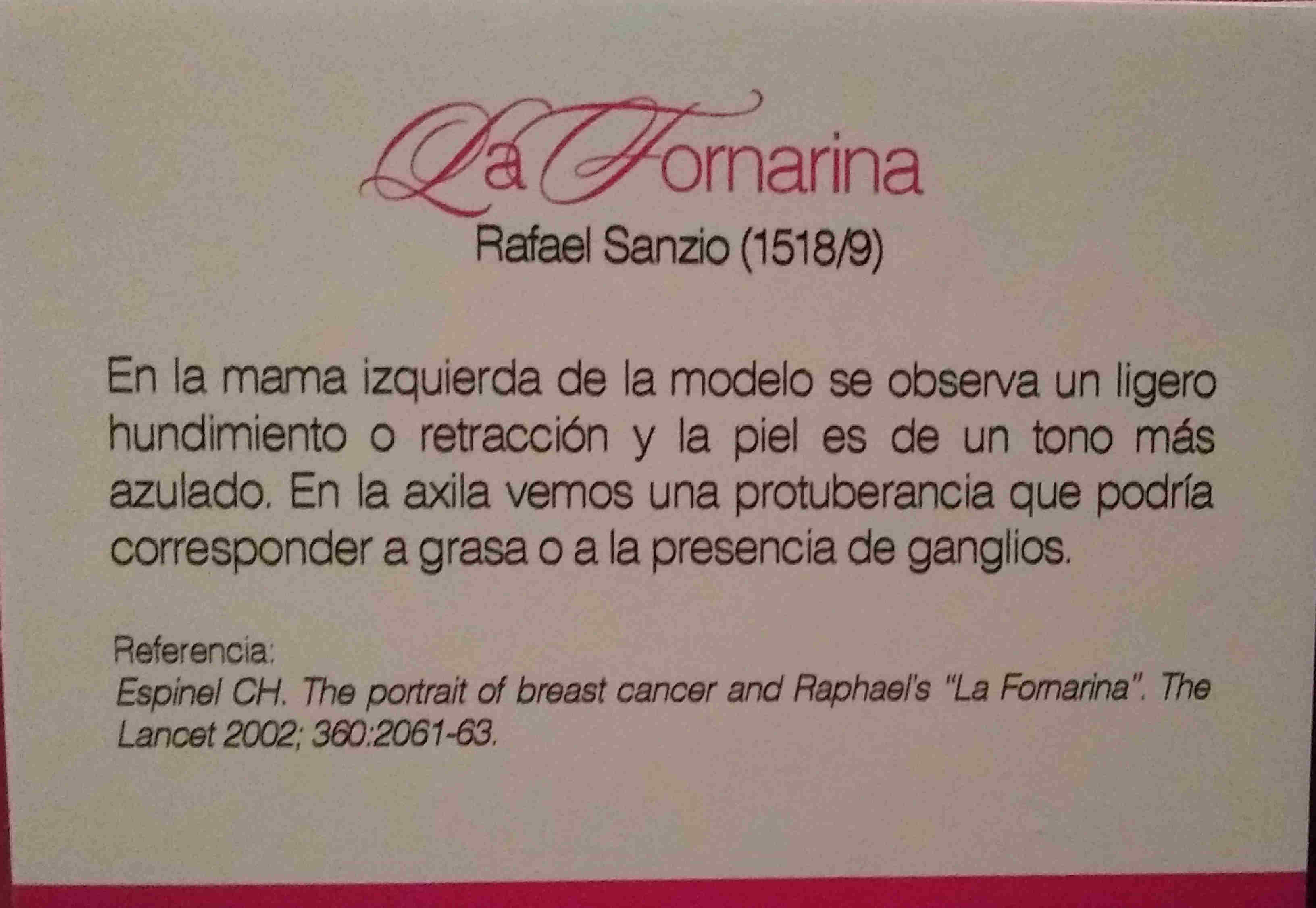 Por su parte, la Dra. Liliana Sosa, médica que brindó el asesoramiento a Macma para poder llevar a cabo la muestra, explicó cómo se llegó a esta instancia: “A principio de la década del 2000 colegas de distintas nacionalidades tuvieron la habilidad de conjugar la medicina con el arte en el sentido de mirar con ojos de la profesión las obras de afamados pintores. Y ahí observaron que en algunas obras de Rafael, Rubens y Rembrandt había modelos con signos físicos o signos gráficos de un probable cáncer de mama. Estas observaciones se publicaron en distintas revistas científicas (…) Hoy Macma pone esta muestra para subrayar el valor del autoexamen mamario”.