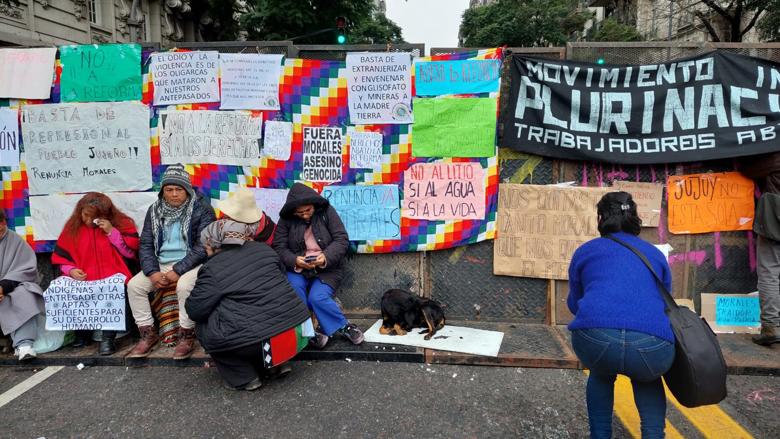 Una multitud se trasladó hasta la avenida Santa Fe 967 donde les esperaba un vallado y un grupo de representantes de pueblos originarios que realizan allí una vigilia desde el domingo a la noche, vigilia que anticiparon, va a continuar. En el lugar, hicieron uso de la palabra referentes de las organizaciones participantes en la marcha. La desconcentración se produjo alrededor de las 16:30.