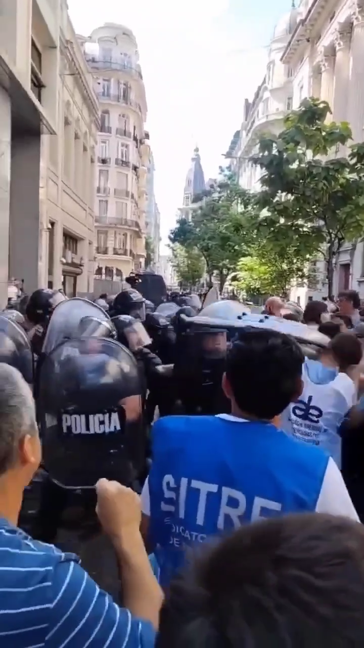 Héctor Ortiz es delegado del Hospital Durand en la agrupación Hospitales de la Ciudad dijo y en sus redes que “Acá en la Legislatura no solo no nos incluyen en la ley sino que nos aprueban una ley trucha, armada por el gobierno de la Ciudad donde nos siguen dejando afuera, ninguneando. No hay equiparación de salarios, no hay reconocimiento profesional, es totalmente vergonzoso. A esto se suma la represión. Tienen una enfermera esposada, maltratada, golpeada.” La enfermera a su vez denunció que en su detención actuó solamente personal masculino.