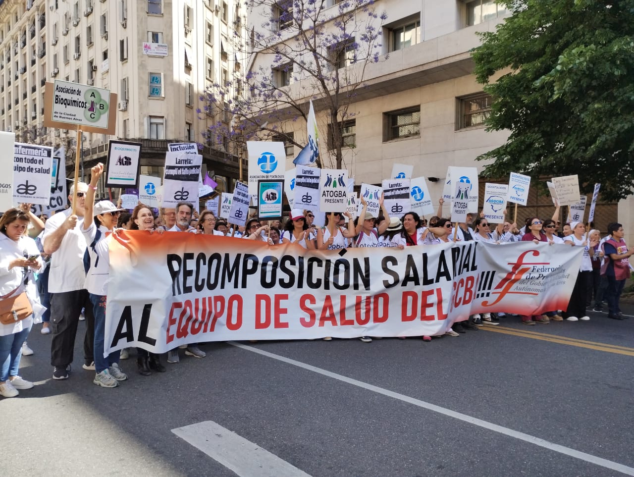 La Asociación de Médicos Municipales, Federación de Profesionales y Sutecba, convocaron hoy a un paro de actividades por 24 horas, con movilización al Obelisco de la ciudad. Se sumaron a la convocatoria enfermeras y enfermeros agremiados en la Agrupación Hospitales de (ATE) y los de la Asociación de Licenciados en Enfermería (ALE), que vienen reclamando el reconocimiento profesional.