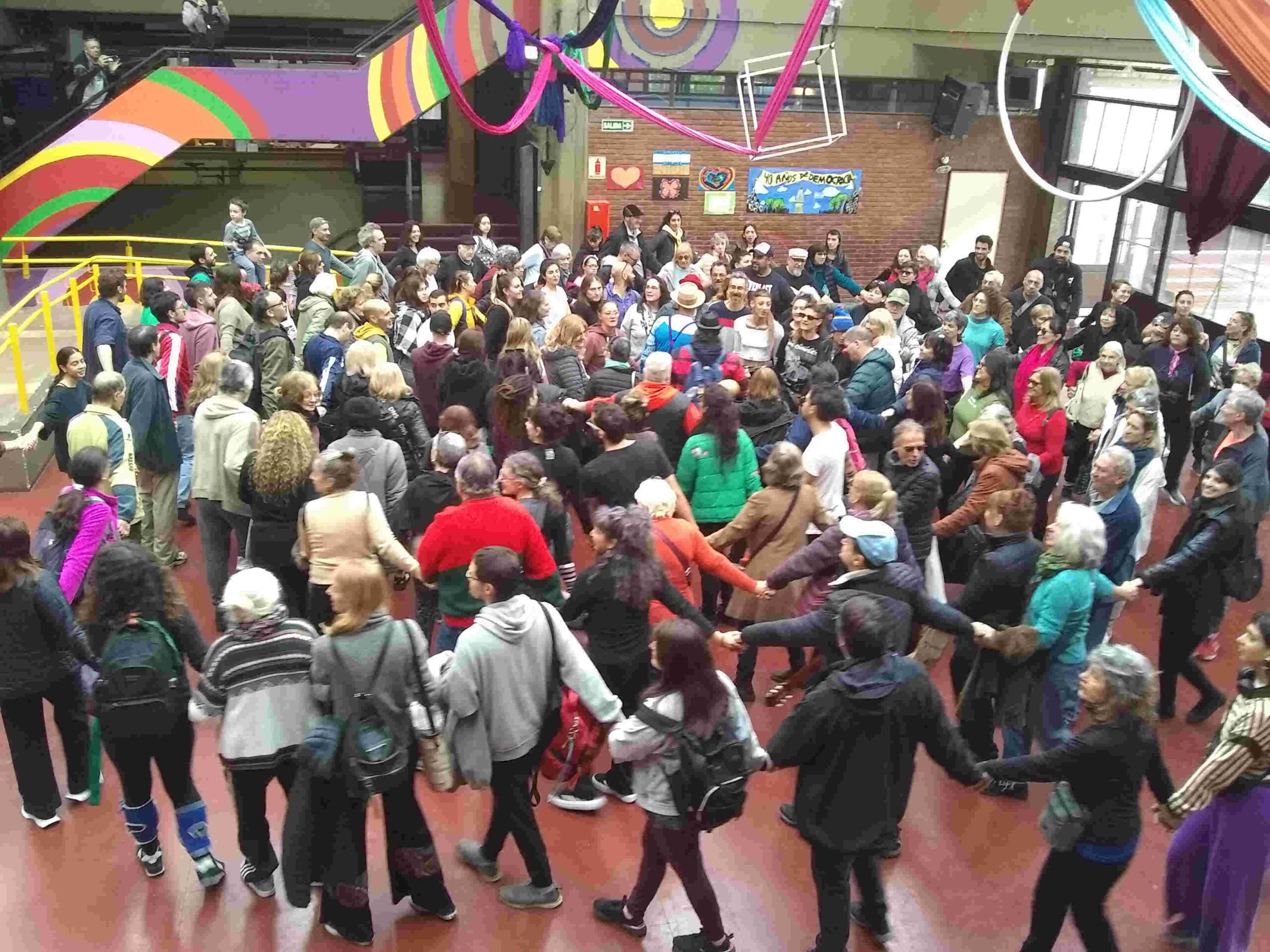 Vecinas y vecinos de Villa Mitre y Paternal se dieron cita el sábado en la escuela Provincia de la Pampa para denunciar los recortes presupuestarios en el Centro Cultural La Paternal que allí funciona fuera del horario escolar. Hubo música, expresiones de algunos de los talleres y un muy particular abrazo “caracol” que se concretó en el corazón del espacio. Las nuevas políticas hacia el área afectan a los 36 centros de la ciudad