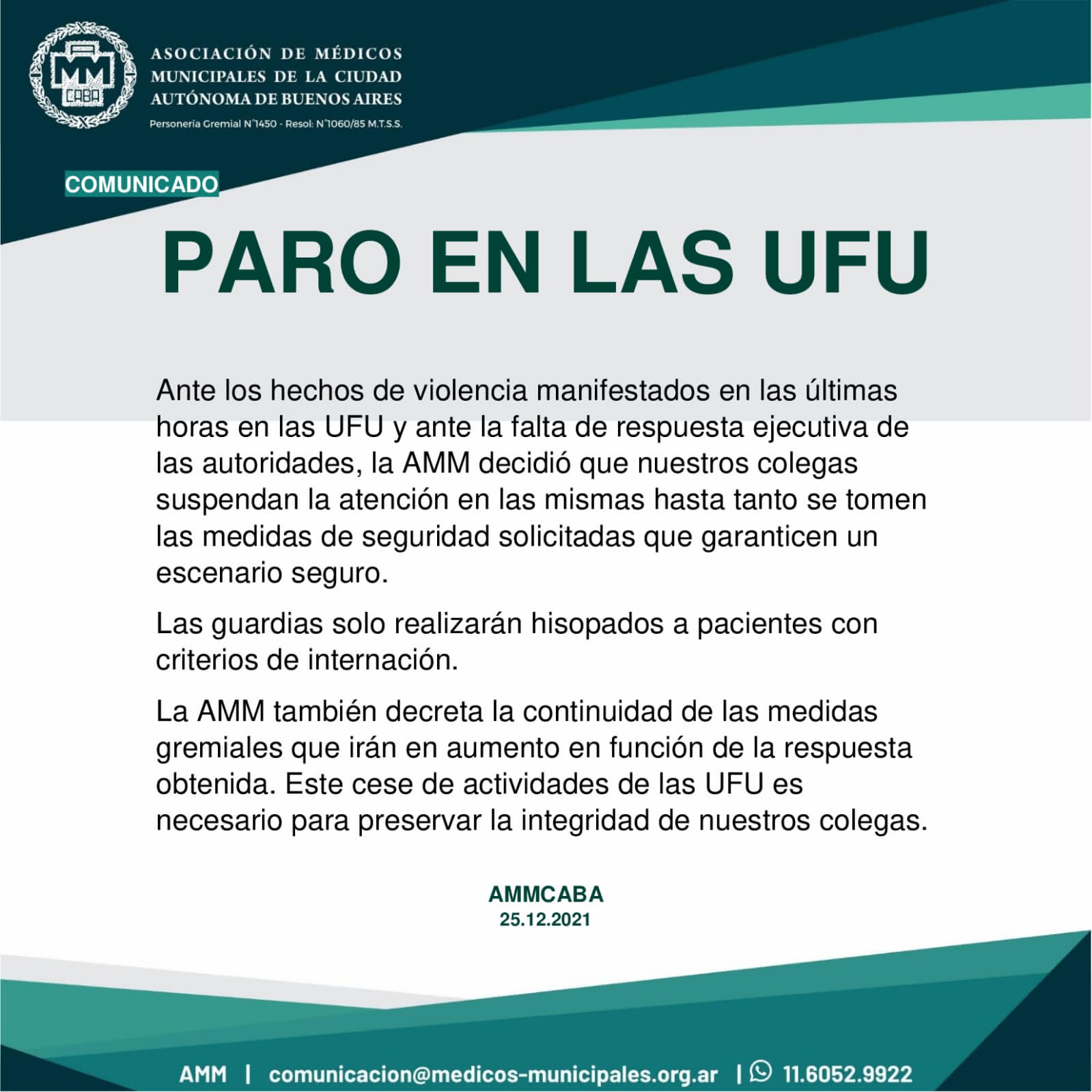 “Ante los hechos de violencia manifestados en las últimas horas en las UFU y ante la falta de respuesta ejecutiva de las autoridades, la AMM decidió que nuestros colegas suspendan la atención en las mismas hasta tanto se tomen las medidas de seguridad solicitadas que garanticen un escenario seguro”