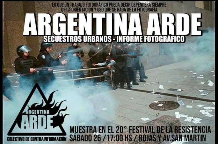 El sábado 26 de marzo, en Rojas y Avda. San Martín, la murga Cachengue y Sudor realizó el 20° Festival de la Resistencia. La jornada se abrió a las 18 horas con la intervención de La Colectiva Radio y su recuerdo a Cachito Fukman y continuó hasta las 3 de la mañana con emociones arriba y abajo del escenario donde hubo candombe, murgas, Ferni y la banda de cumbia Tigra que cerró la actividad. Entre las organizaciones sociales que tuvieron su espacio en el escenario se encuentran integrantes de la ronda de los jueves, familiares de víctimas de gatillo fácil, Alfredo Cuellar. Hubo también mesas con integrantes de Movimiento Cromagnon y una muestra de fotos de Argentina Arde