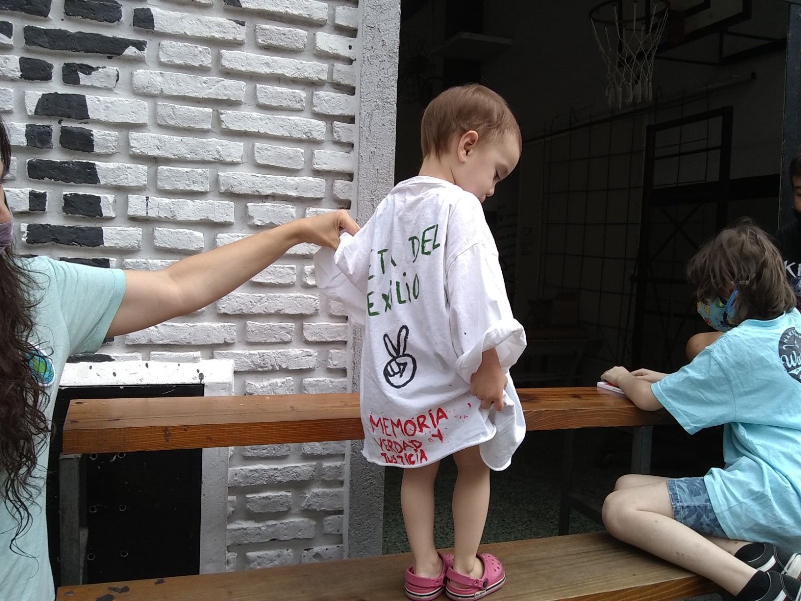 La participación de chicos, chicas, algunas pequeñas con remeras alusivas a su nacimiento en el exilio, todos y todas acompañando a sus padres, madres, abuelas, puso de relevancia la importancia de los actos barriales como forma de participación plena. Hubo también un espacio para expresarse en cartulinas en los muros del club y por allí pasaron muchos de los niños y niñas.