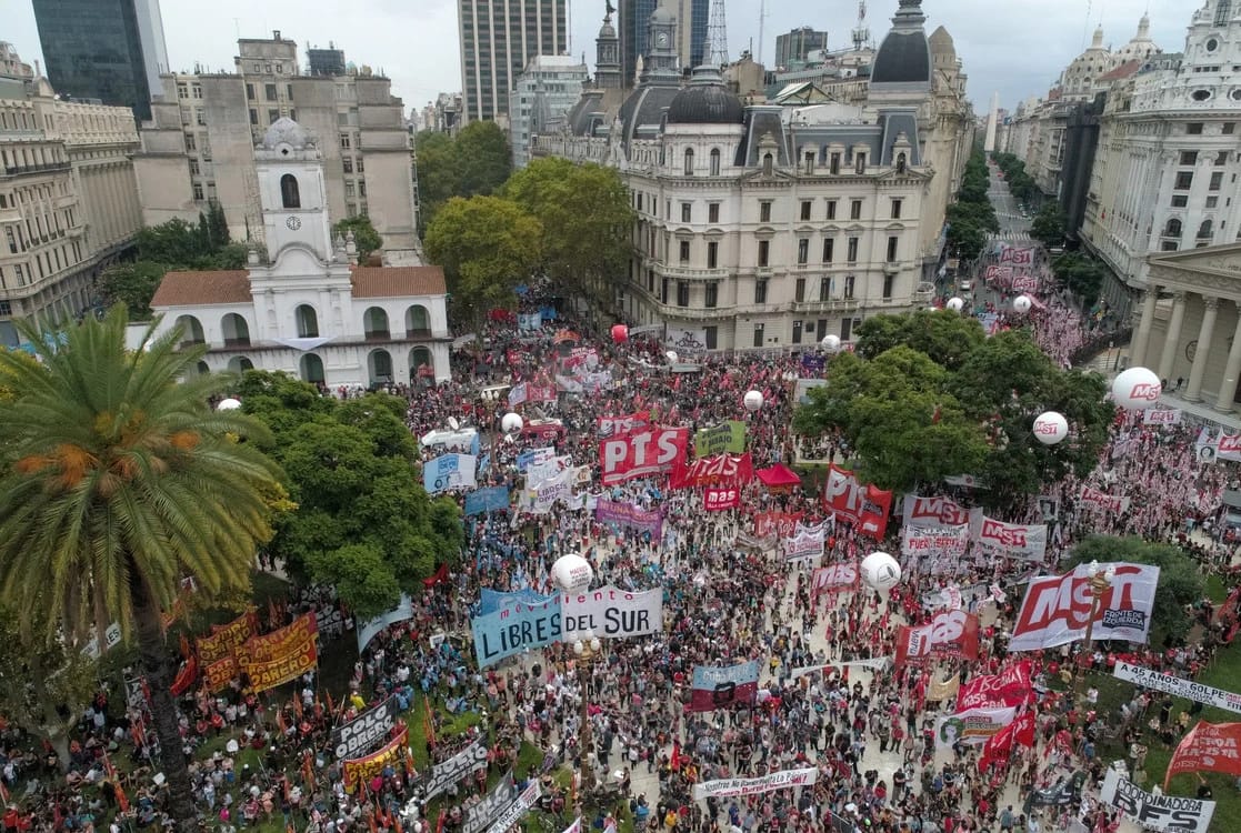 Entre Congreso y Plaza de Mayo hubo una manifestación multitudinaria que por momentos alcanzó las 16 cuadras de largo. Organizaciones, partidos políticos y organismos de derechos humanos que integran el Encuentro Memoria Verdad y Justicia fueron los convocantes. Algunas Madres de Plaza de Mayo tuvieron una participación virtual a través de una transmisión colaborativa de medios comunitarios y una pantalla gigante instalada en la plaza.