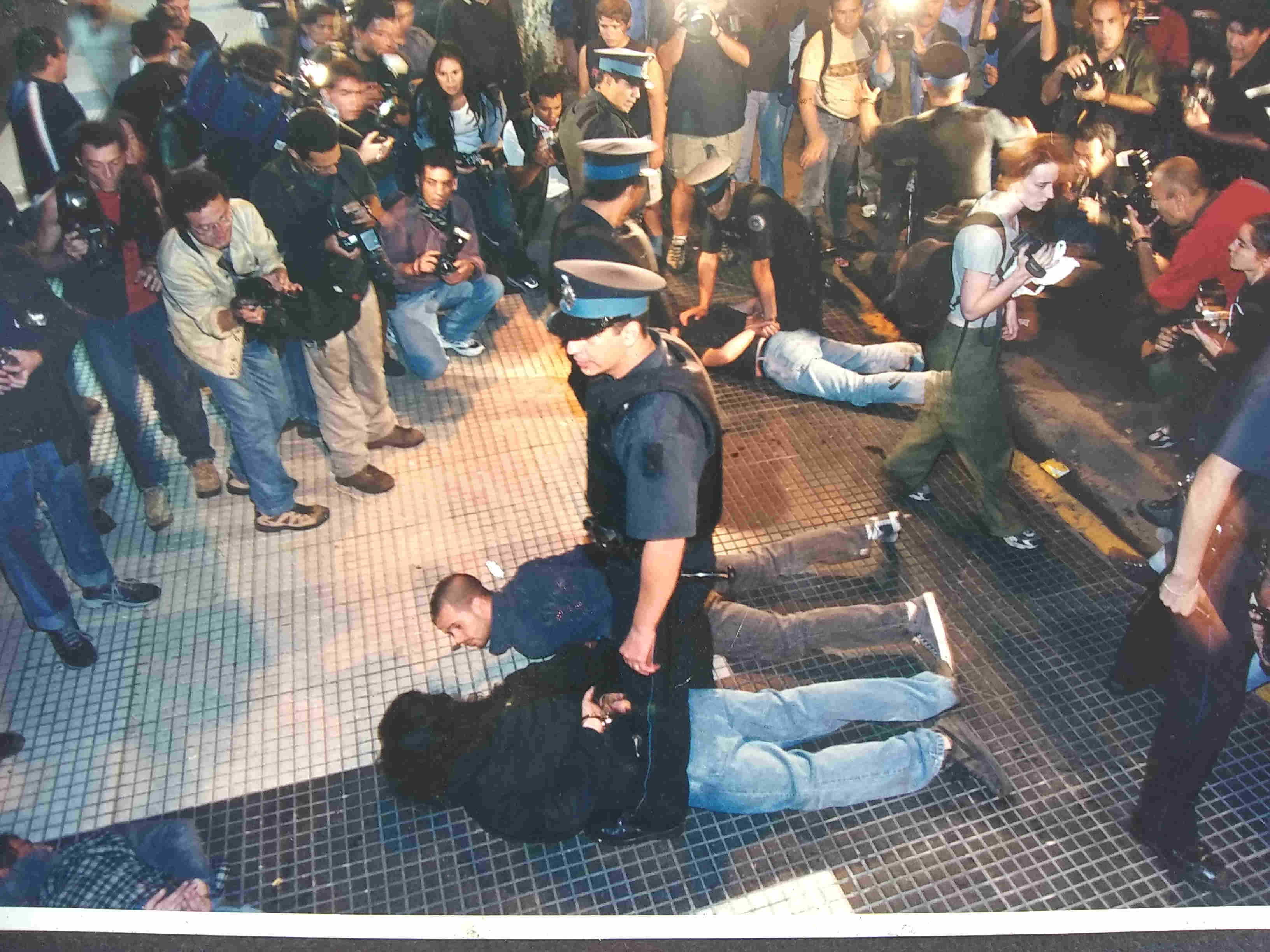 El 20 de diciembre de 2001, luego de que De la Rúa firmara el decreto que declaró el Estado de Sitio, la Policía Federal, uniformada y de civil, desató una casería humana sobre los manifestantes en el centro porteño. Sólo en ese espacio comprimido, escenario de la represión, fueron asesinados con bala de plomo Diego Lamagna, Alberto Márquez, Marcelo Gastón Riva, Carlos Almirón y Gustavo Benedetto. Las pericias efectuadas en la investigación judicial indican que los proyectiles hallados en los cuerpos de los cuatro primeros guardan similitud con los perdigones que conforman los cartuchos de propósito general (de plomo) para escopetas calibre 12/70. Las escopetas calibre 12/70 son las que la policía utilizó ese día, entre otras armas, para disparar munición antitumulto contra los manifestantes. En tanto Gustavo Benedetto recibió el impacto de una bala de plomo en la cabeza.